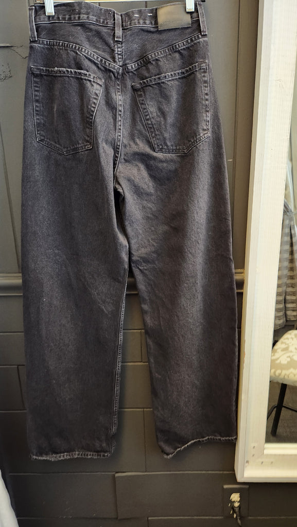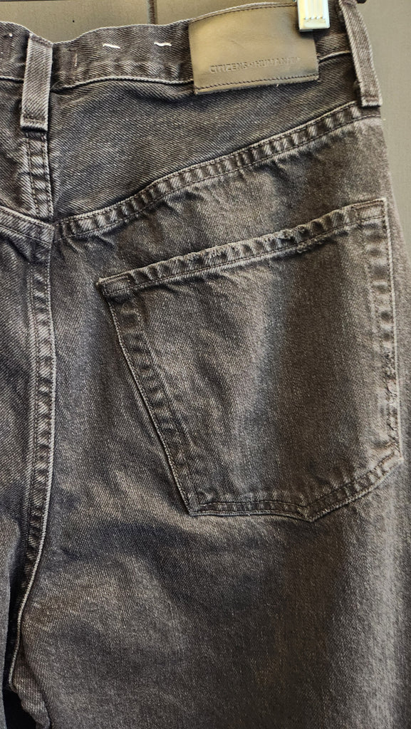 Citizens of Humanity Black Jeans Ayla Style. Button front and long wide straight leg. Slightest give to the denim fabric.
