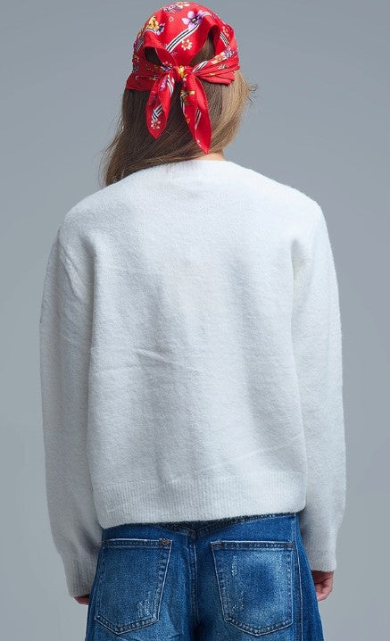 Charming White Cardigan with Heart Buttons