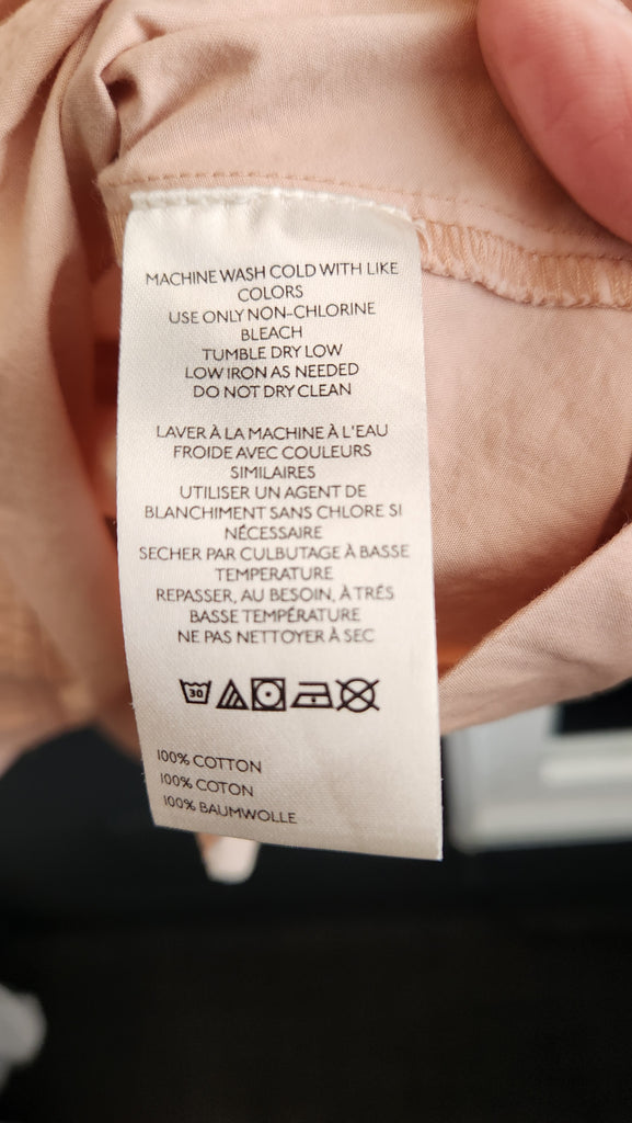 Maeve Sleeveless Zip Front Light Pink Top, with white topstitching detail, pockets. V neck to gold zipper front.