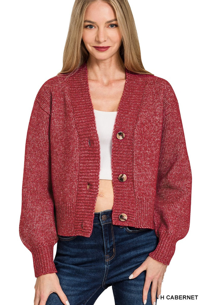 MELANGE DROP SHOULDER BUTTON FRONT SWEATER CARDIGAN