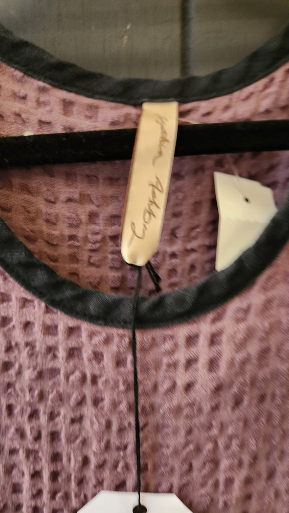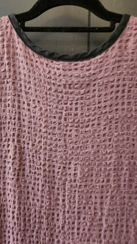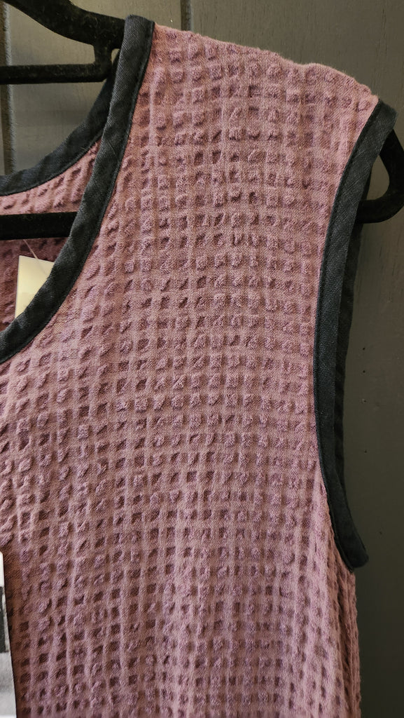 Cynthia Ashby Sleeveless Purple Gauzy Waffle Fabric Dress with Black Piping