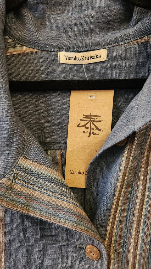 Yasuko Kurisaka Handwoven Blue Stripe Blazer Top